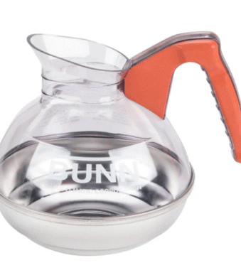 Bunn Easy Pour Coffee Pot – 12 Cup – Plastic with Stainless Bottom, Orange Handle (Decaf), Each