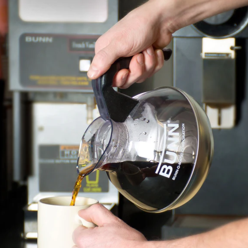 Product Name: Bunn Easy Pour Coffee Pot – 12 Cup – Plastic with Stainless Bottom, Black Handle, Each