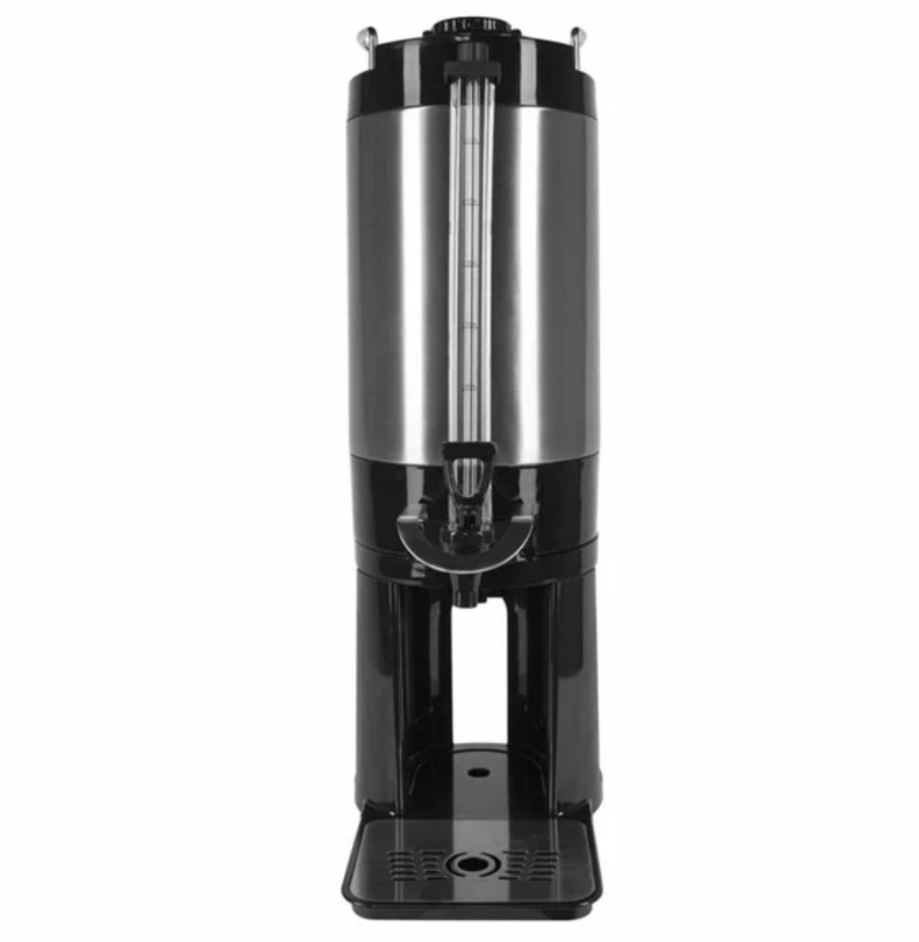 This server stands out by minimizing messes, employing an insulated faucet and a protective stainless steel faucet guard to prevent spills and drops. The unit remains pristine and professional even with heavy use, thanks to its anti-fingerprint coating. It also comes equipped with an integrated drip tray to catch minor spills and overflow, complemented by a detachable base that facilitates easy transport and cleaning. An invaluable addition to settings like break rooms, cafes, restaurants, or cafeterias.